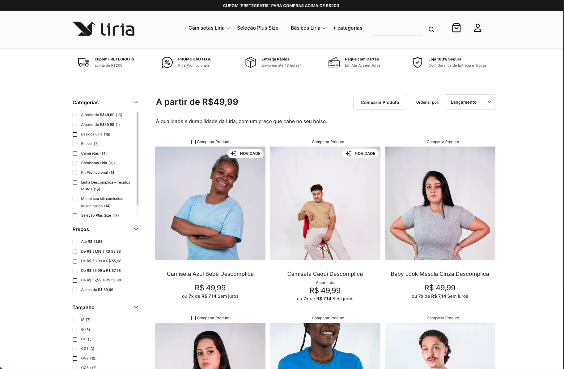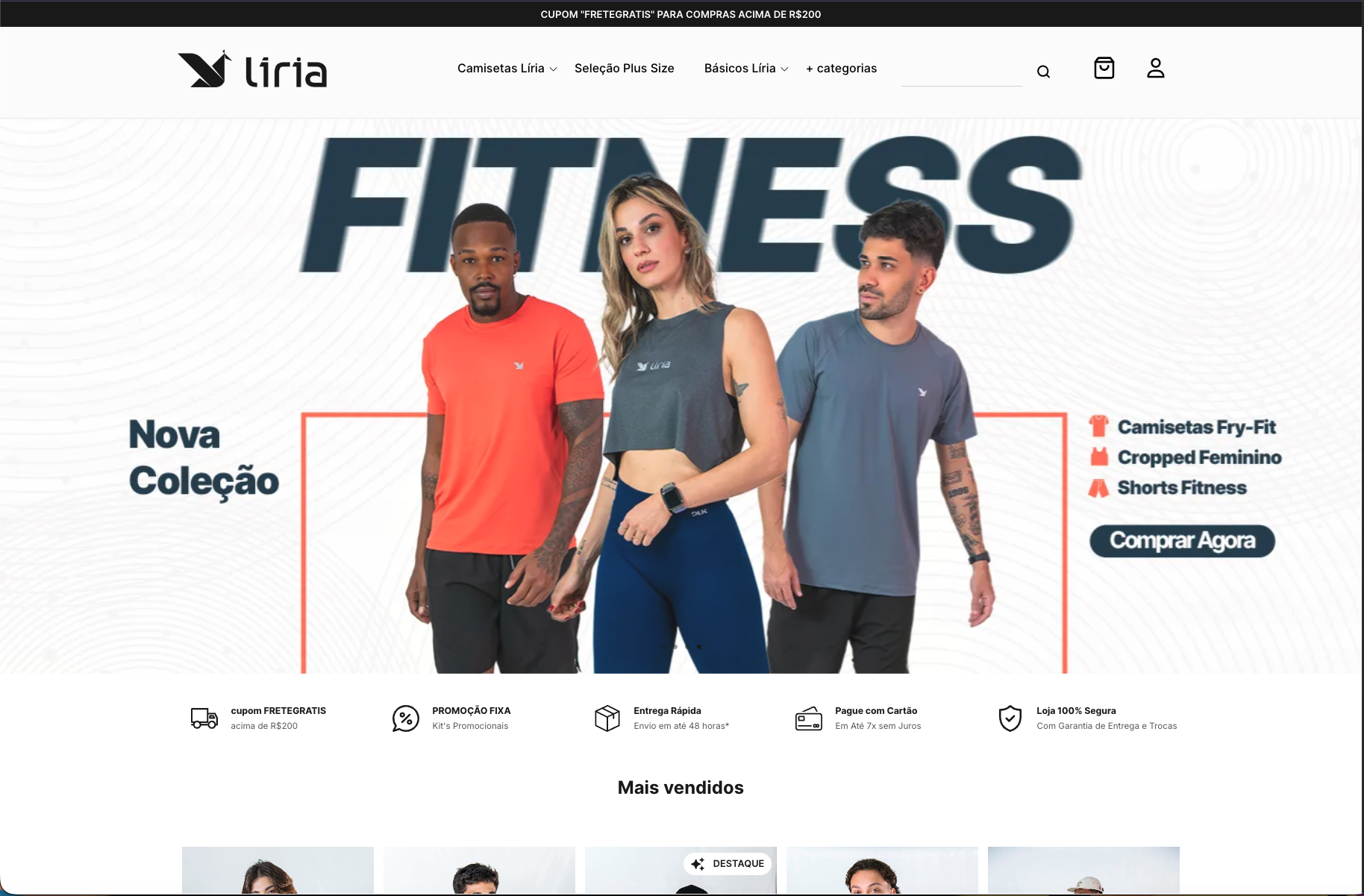 A Liria Shop tinha uma loja funcional — mas sua identidade visual não acompanhava o nível da marca nem do produto que vendia. Layout datado, hierarquia visual confusa e uma experiência que não fazia jus à curadoria de moda por trás dela.